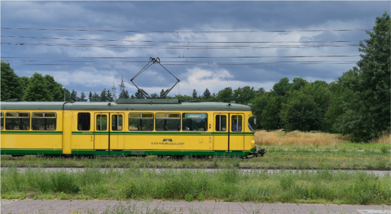 Mit dem 66 Jahre alten Gelenktriebwagen „4“ geht es nostalgisch auf die Schienen, vorbei an bunten